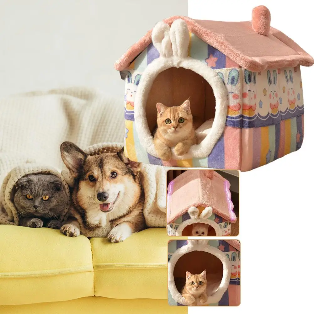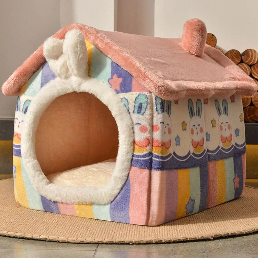 Cute Luxury Cat Villa Cat Bed Winter Warmth Fully Enclosed Removable Cushion Pillow Cat Tent Cat Dog Pet Nest Girl Pink PP Cotto