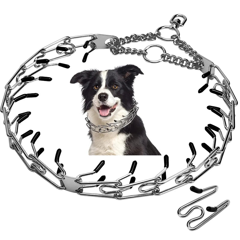 Dog Collar Choke Stainless Steel Pinch Dog Training Collar with Comfort Rubber Tips Adjustable Metal Silver Pet Prong Necklace