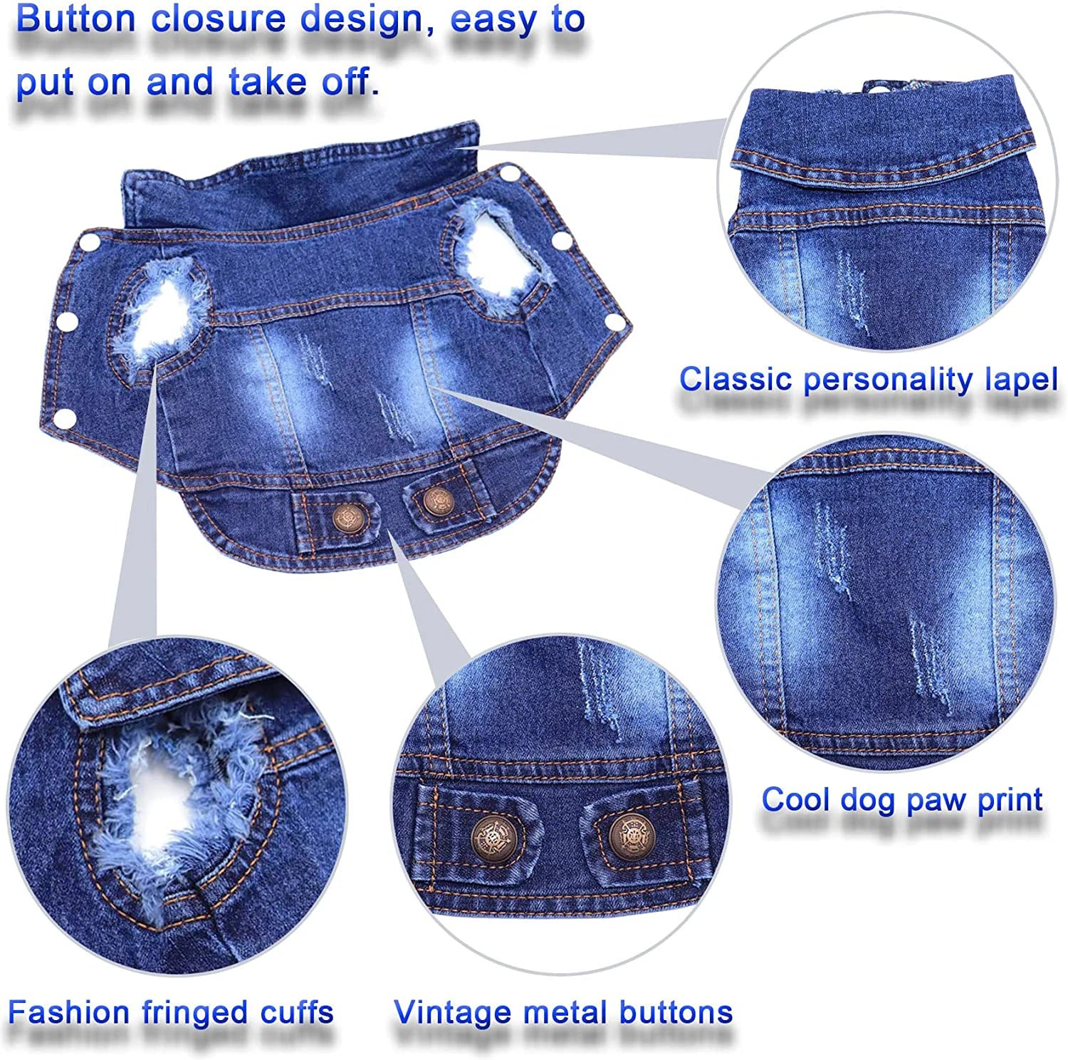 2. Dog Jean Jacket Material: Denim Fabric, durable soft and comfortable dog clothes, your pets will love dog jeans!