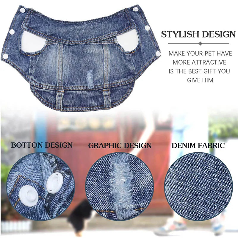 4. Fashion Style: Retro Jeans Jacket style, lapel collar, Button closure design,easy to put on and take off.Fashion,these dogs clothes will be the best gift for your dog.