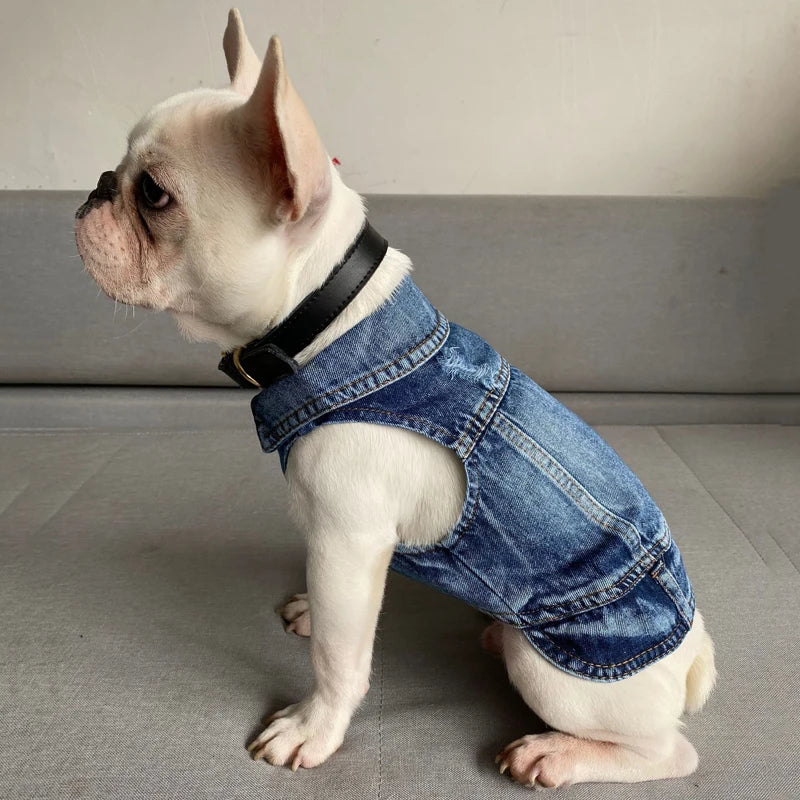 Spring Autumn Dog Clothes for Small Dogs Cool Dog Denim Jacket Jeans Lapel Vest Coat Outfits Pet Apparel Yorkie French Bulldog Costume