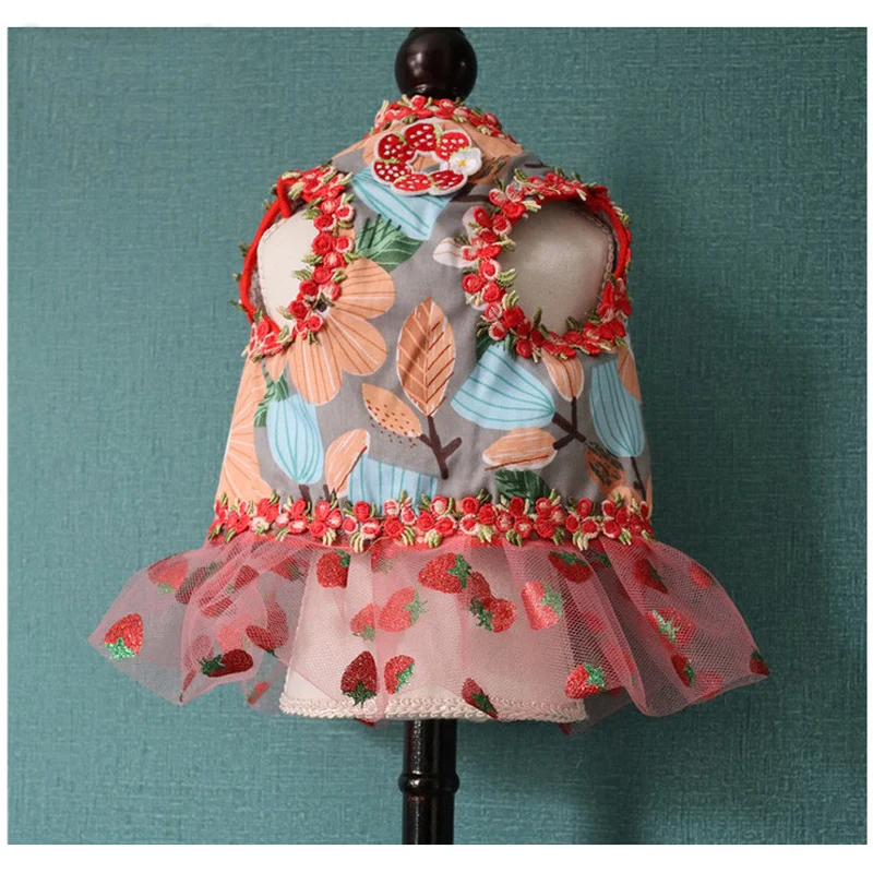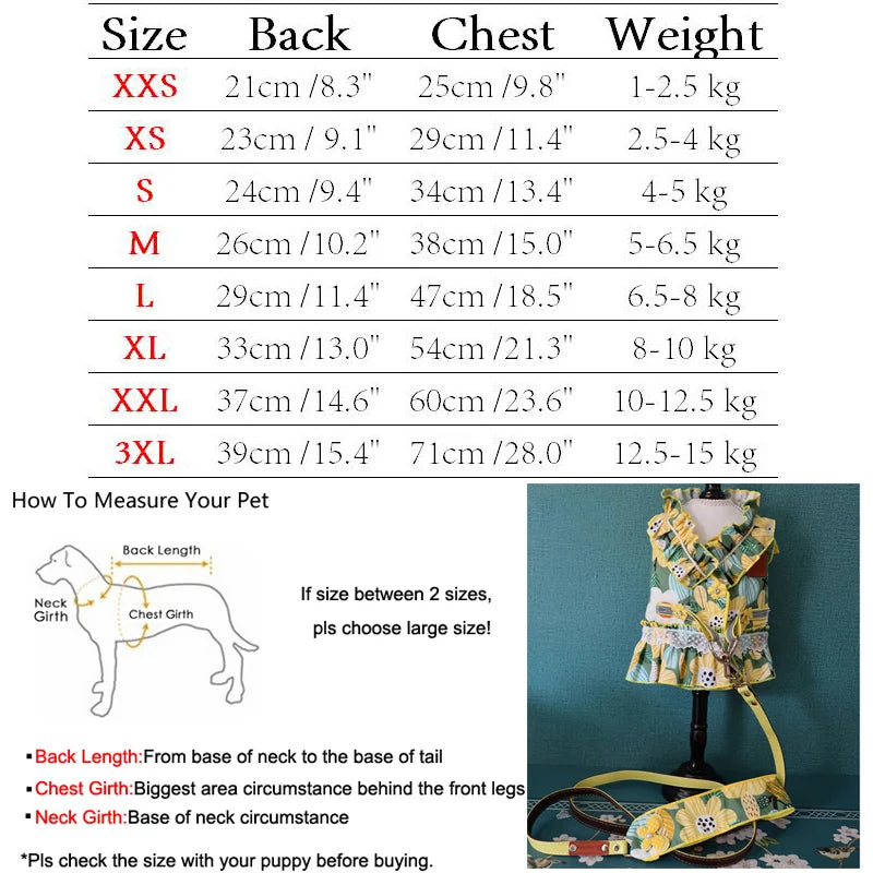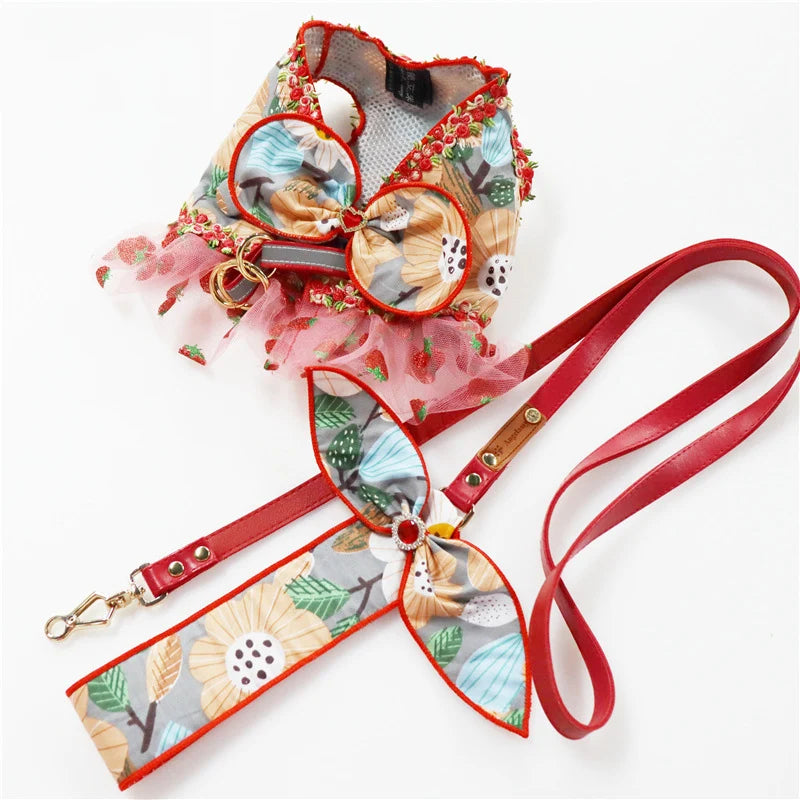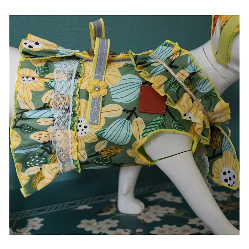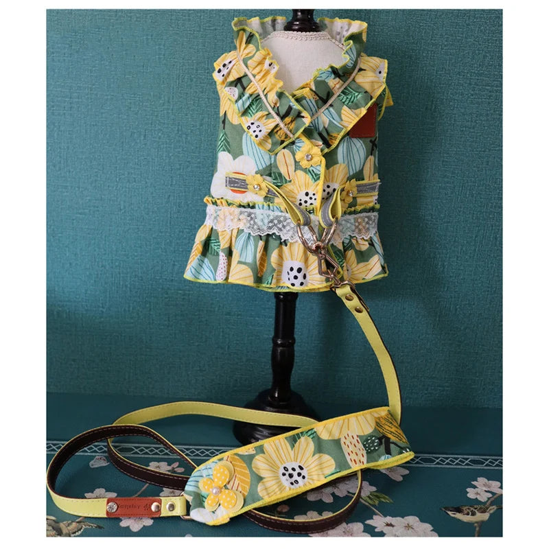 Dog Dress Harness Leash Set for Small Medium Dogs Cat Walking Summer Floral Print Luxury Design Puppy Short Dress with Pearl Bow