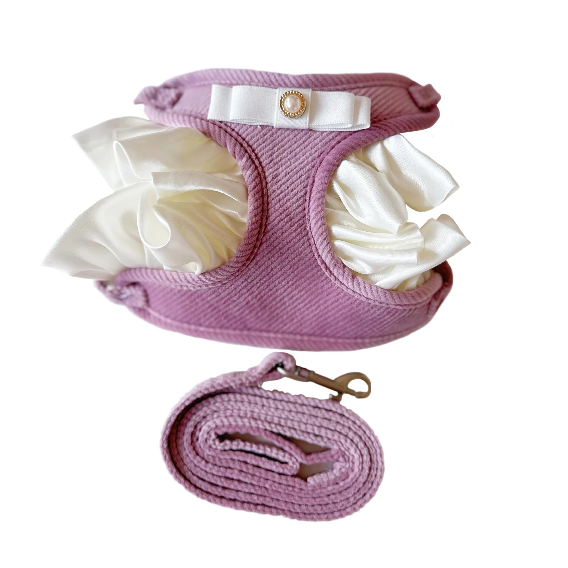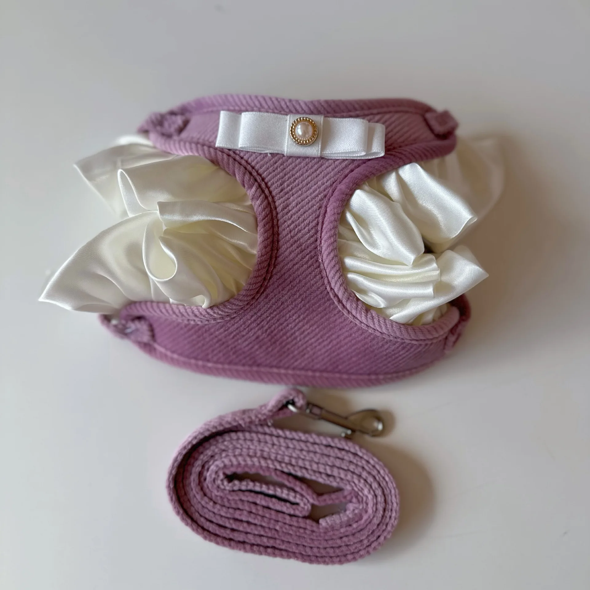 Dog Harness and Leash Set for Small Dogs Cats,Soft Cotton Lace Ruffles Design Pet Vest Harness with Pearl Bowtie Pet Accessories