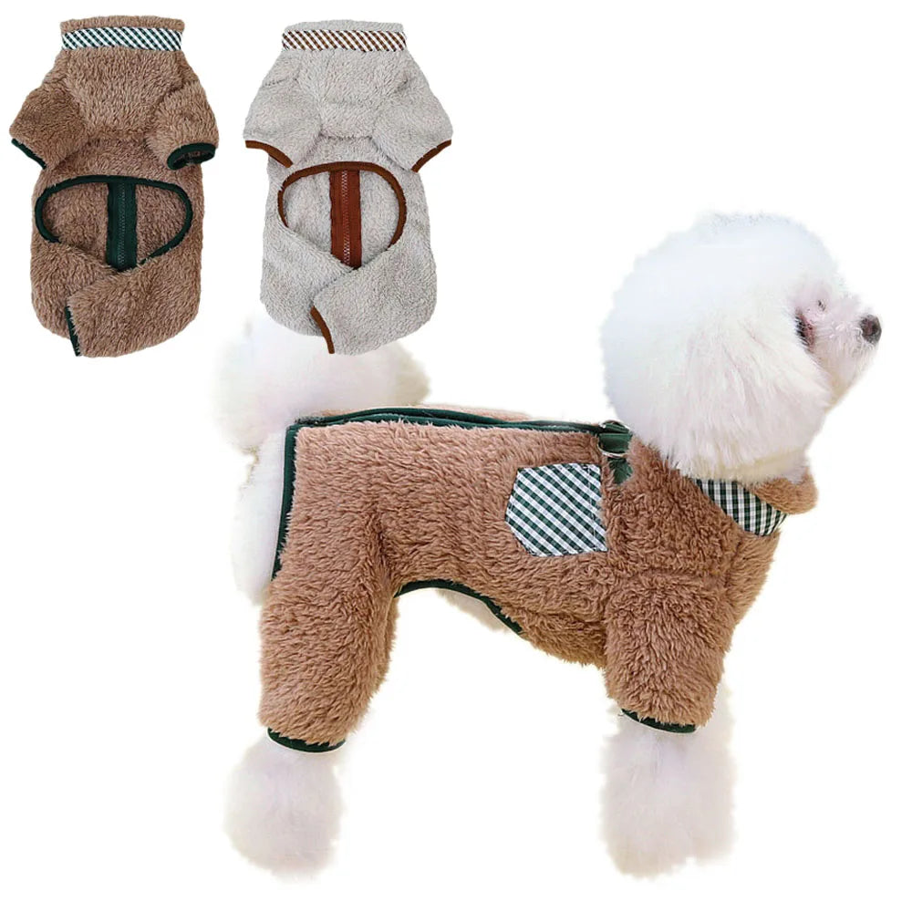 Dog Jumpsuit Coat Winter Warm Plush Pet Clothes for Small Dogs Puppy Pajamas with Double D Rings Chihuahua Costume Yorkie Onesie