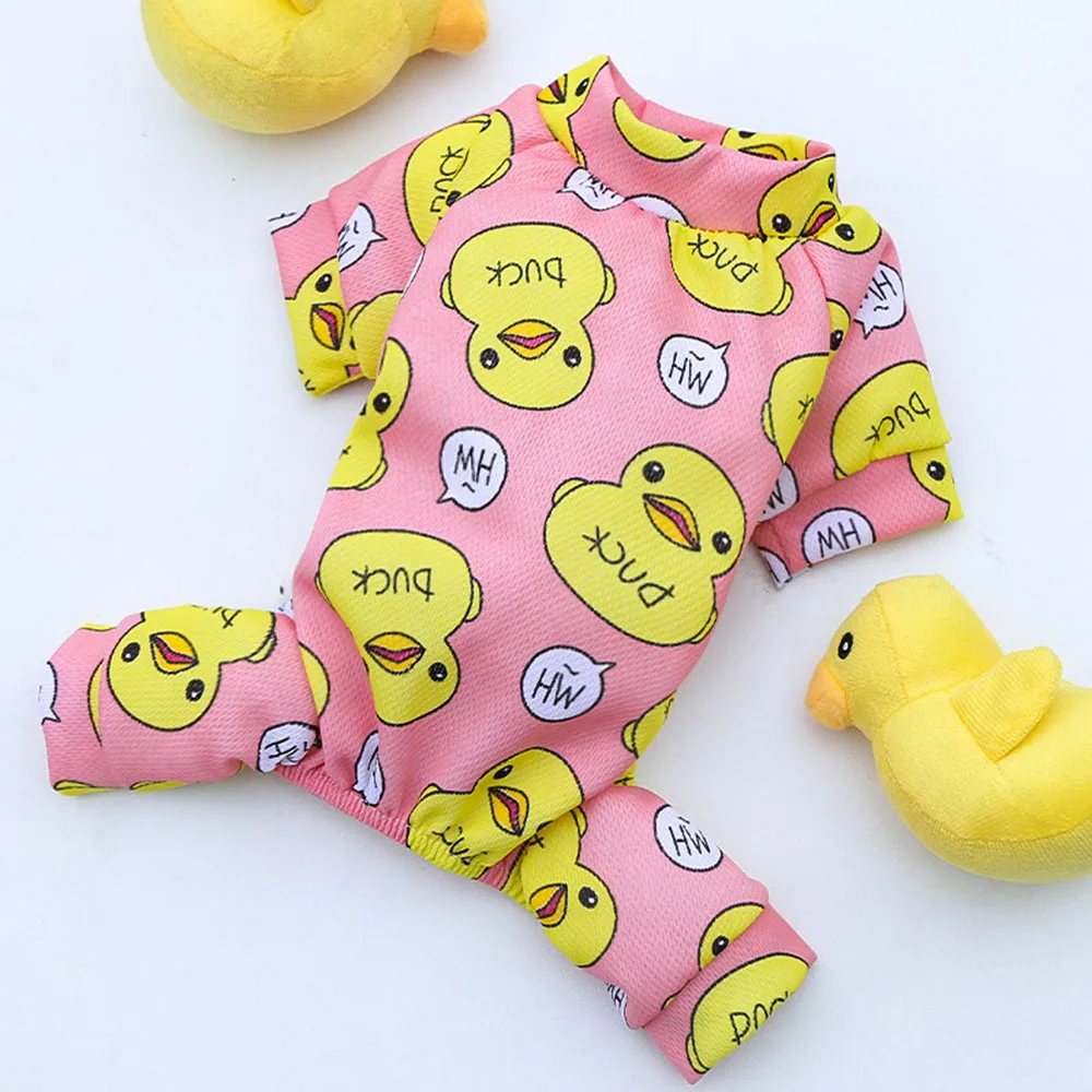 Dog Jumpsuit Puppy Dog Onesies Clothes Cat Dog Soft Pajamas Cute Duck Printed Pet Shirt Bodysuits for Teddy Pomeranian Apparel