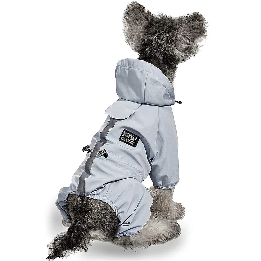 Dog Raincoat Quick Dry Pet Reflective & Adjustable Rain Poncho Jacket Waterproof & Windproof Puppy Hooded Cloak 4 Legs Raincoat