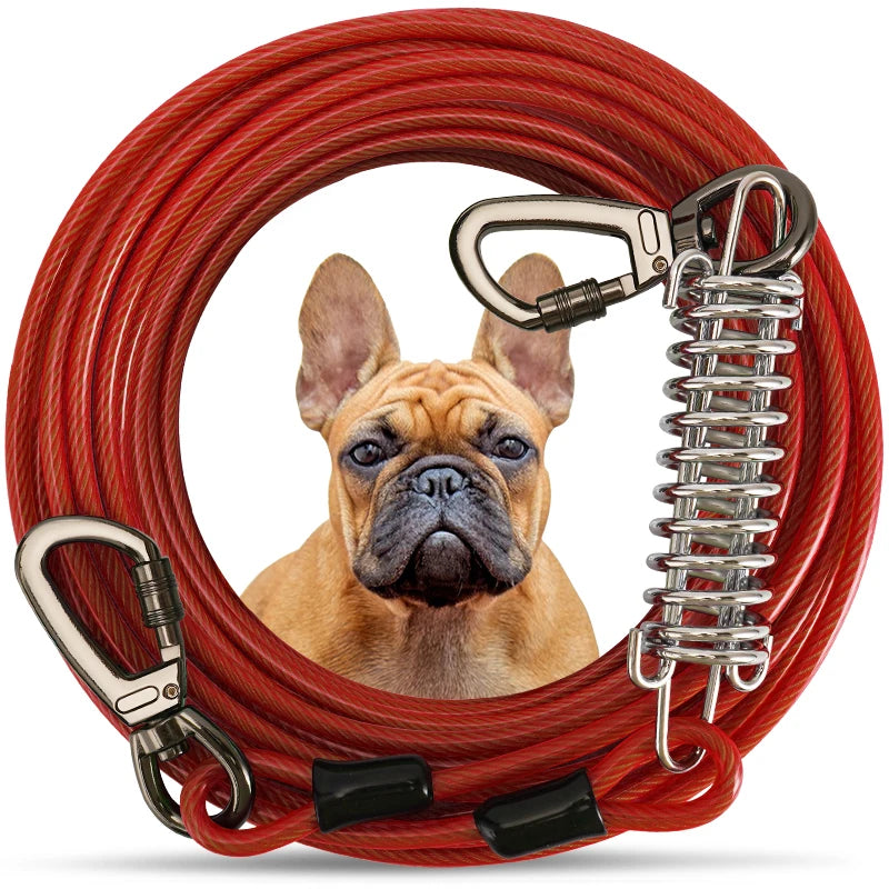 Dog Tie Out Cable Leash with Spring, Double-Headed Steel Wire Rope, Outdoor Dogs Straps, Running Rope for Small Big Dogs
