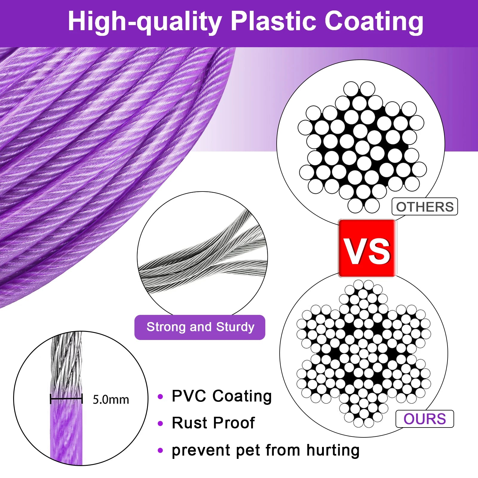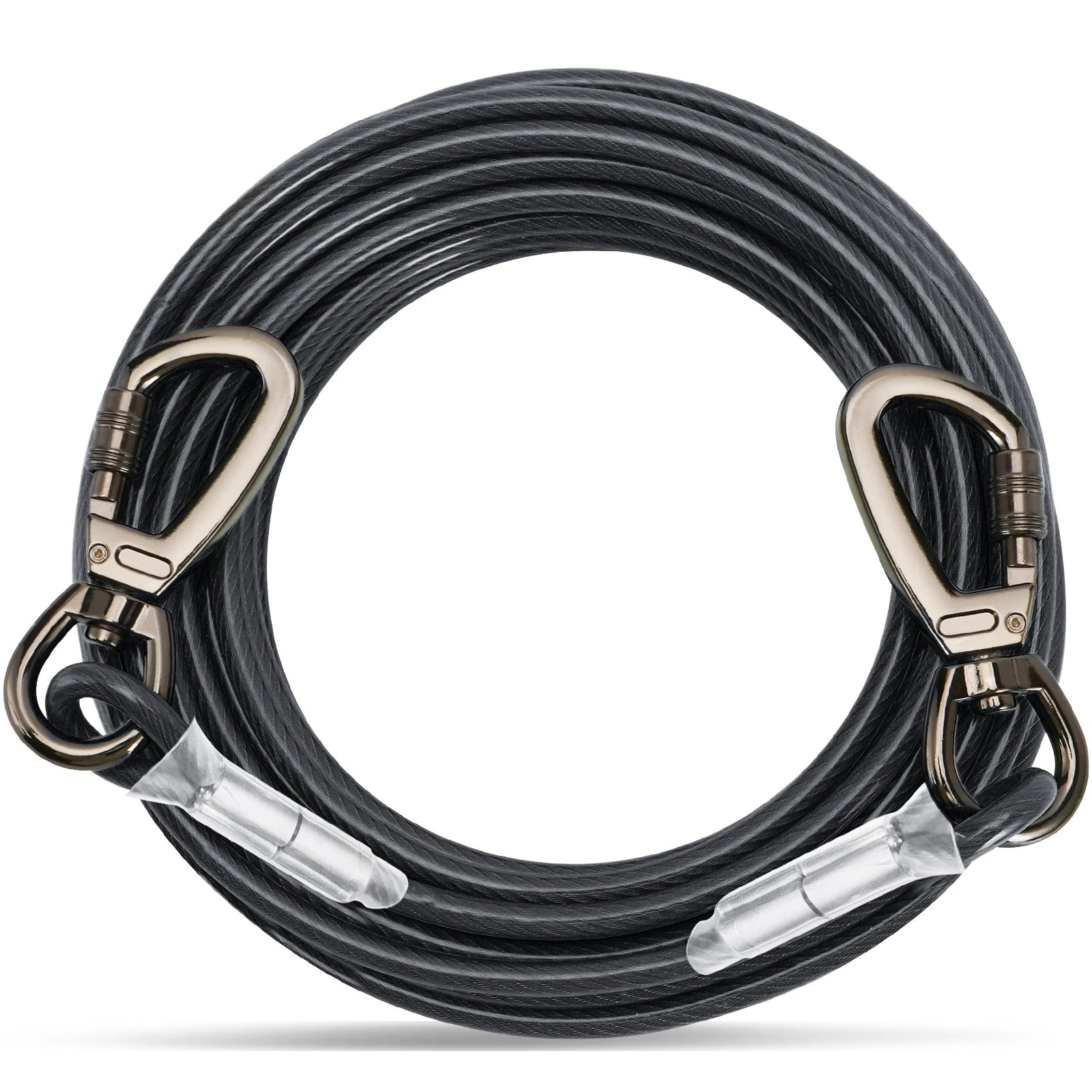 Strong Tie Out Cable: The tie out cable for dog is made of 5mm strong steel wire rope and PVC coating , which is chew and rust proof,the alloy clips with safety lock has rigorously quality tested.At 10/20/30/50 feet long, rigorously tested for dogs up to 250 lbs,has high tensile strength and impact toughnes.