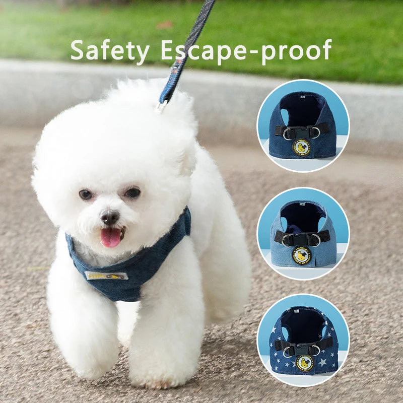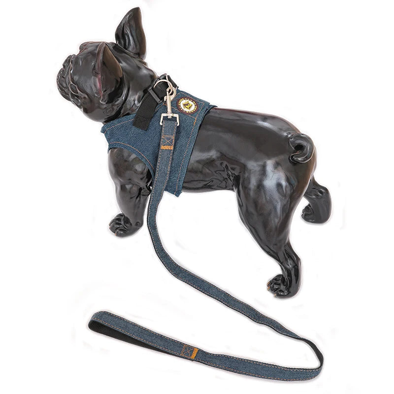 Durable Dog Denim Harness and Leash Set, Adjustable Step in Lightweight Pet Jeans Vest Harness for Small Medium Dogs Bulldog