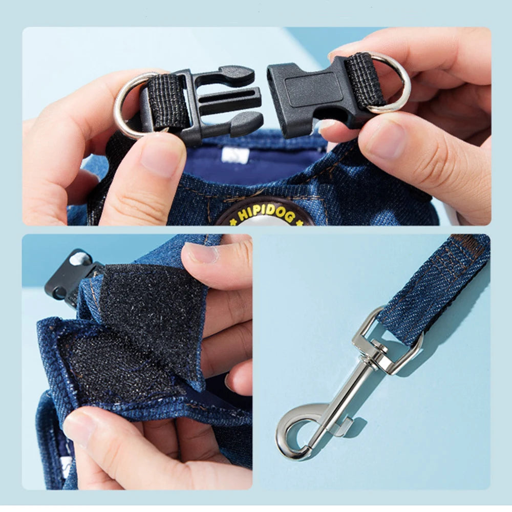 Eye-catching design: With its stylish denim-inspired look, the Hoopreety pet harness is sure to turn heads on your walks around the neighborhood.