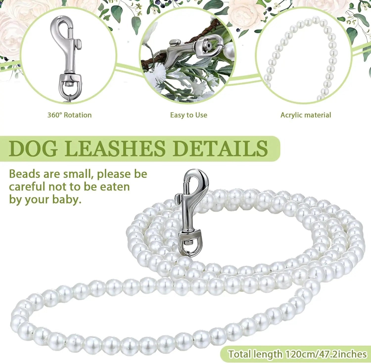 Delicate Pearl Dog Leash: The white pearl dog leash is stringed by delicate imitation pearl, not only beautiful and chic, but also practical, which can make your pet look elegant and charming, perfect companion for wedding photos.