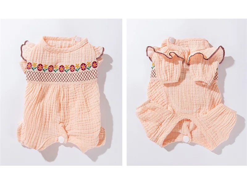 Embroidery Pink Floral Overalls for Dogs Spring Summer Protective Pet Cat T Shirt Female Pure Cotton Chihuahua Small Dog Clothes