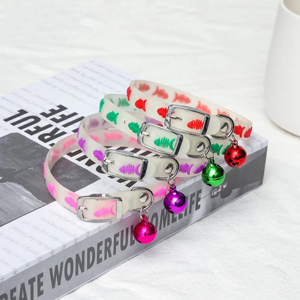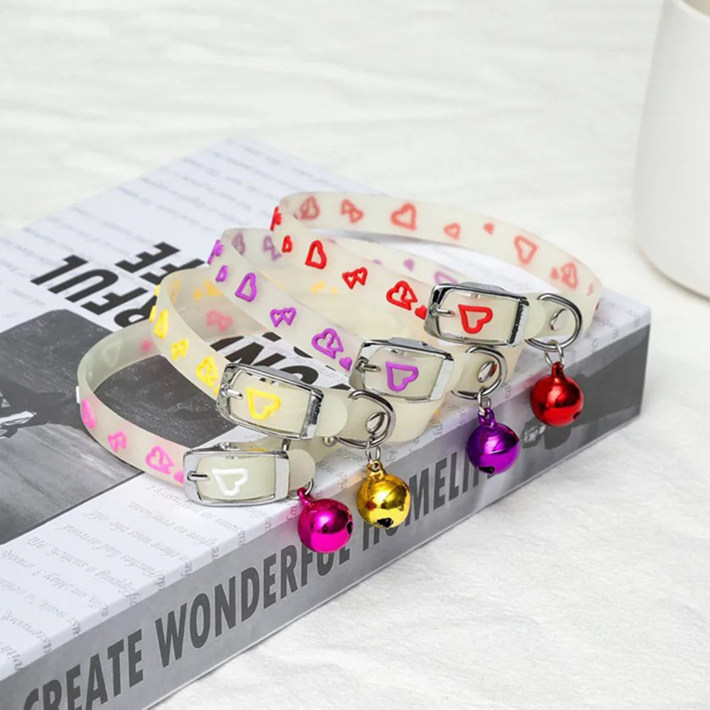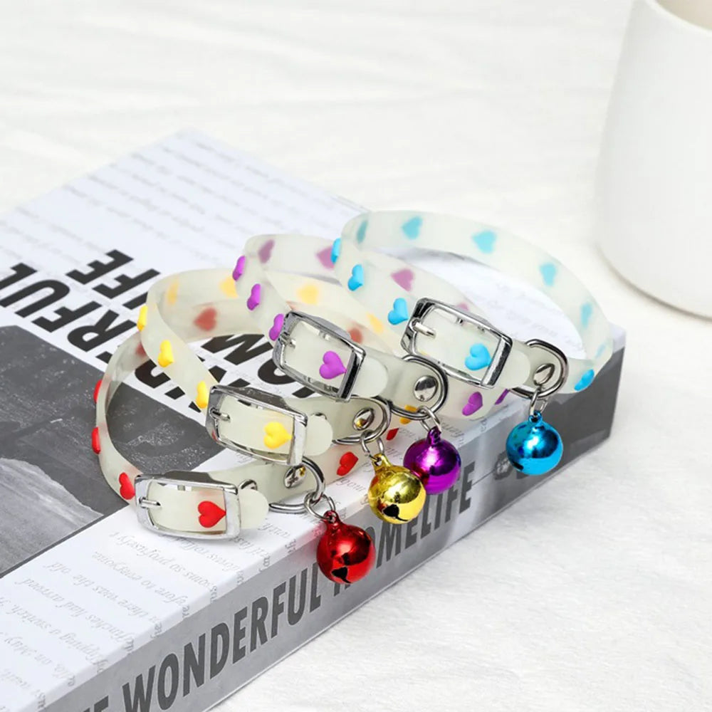 Fashion Pet Glowing Collars with Bell Glow at Night Dogs Cats Necklace Light Luminous Neck Ring Accessories for Kitten and Puppy