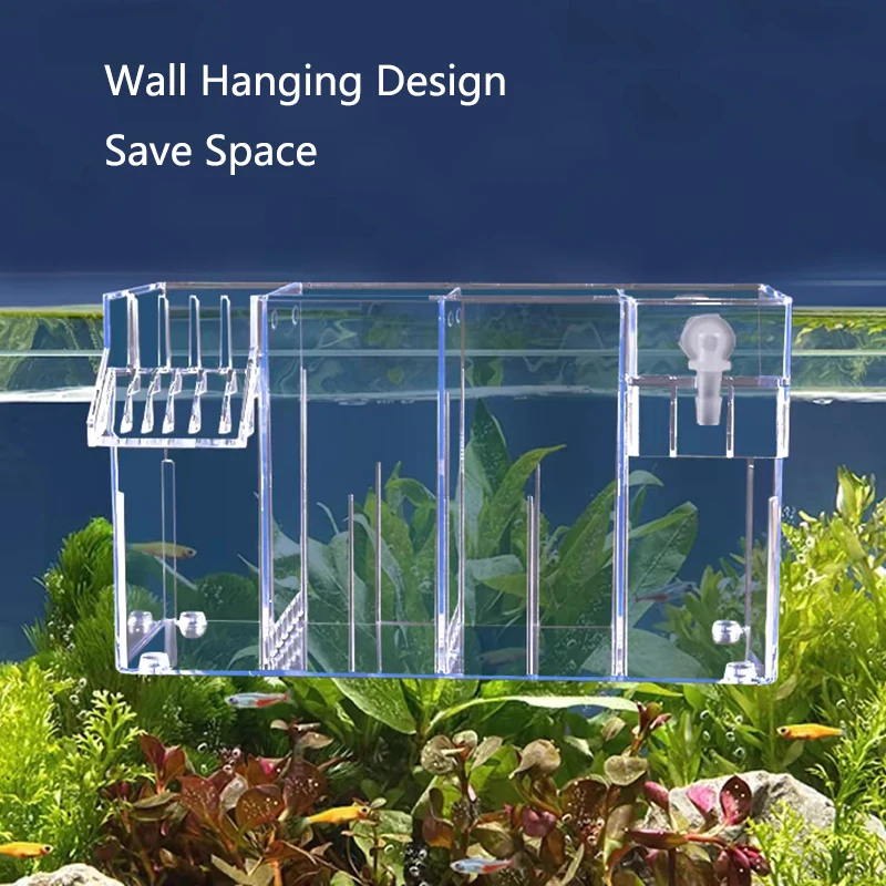 Fish Tank External Filter Box Acrylic Filter Dry and Wet Separation 4 in 1 Small Silent External Suspend Aquarium Drip Overflow