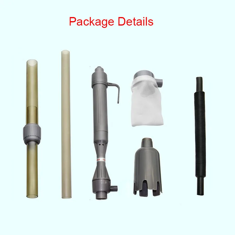 Cleaning the gravel and debris from the bottom mud. Changing water with freedom without the limit of the power cord length at any time any place. Adjustable length, suitable for many kinds of aquariums and fish tanks. Powerful power, no blockage. Easy and simple to use.