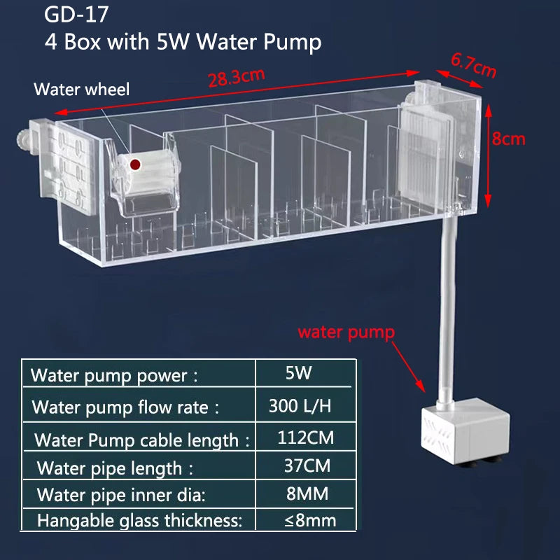 Package included:1 Set Three/Four/Five fish tank filter boxes with water pump