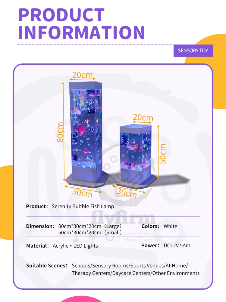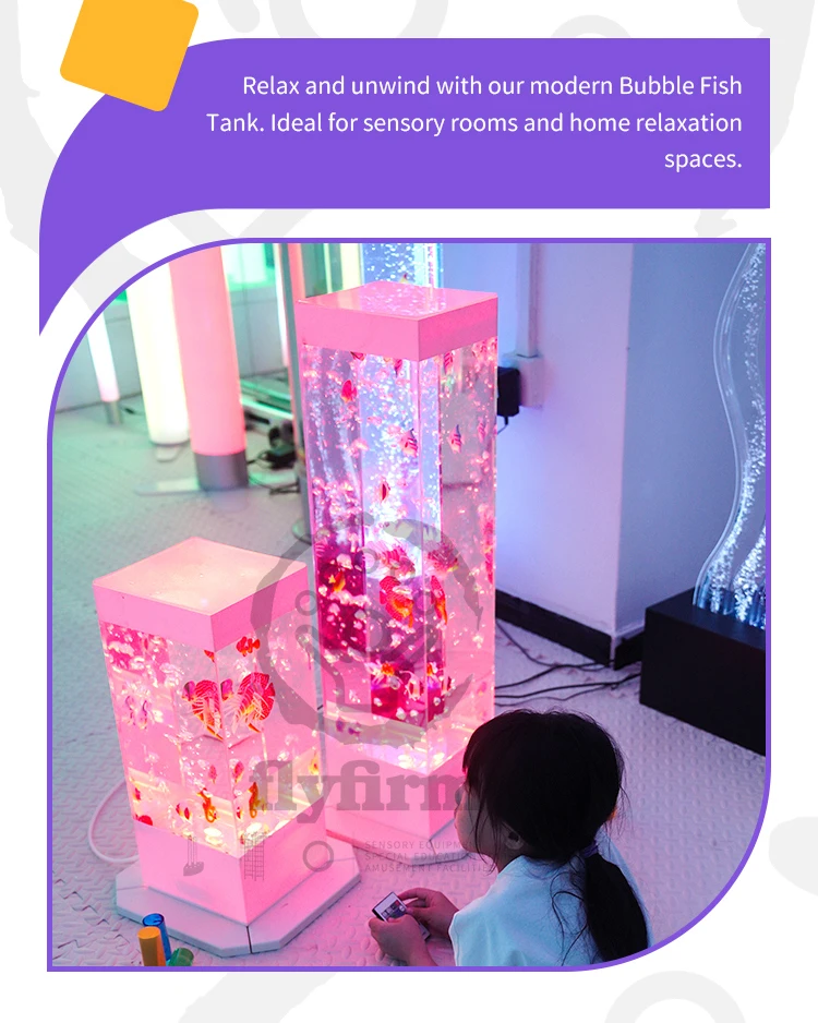 Ideal for sensory rooms, relaxation spaces, or even home decor, this bubble fish tank is especially effective at night, offering a soothing, colorful light display that promotes relaxation and mental clarity.