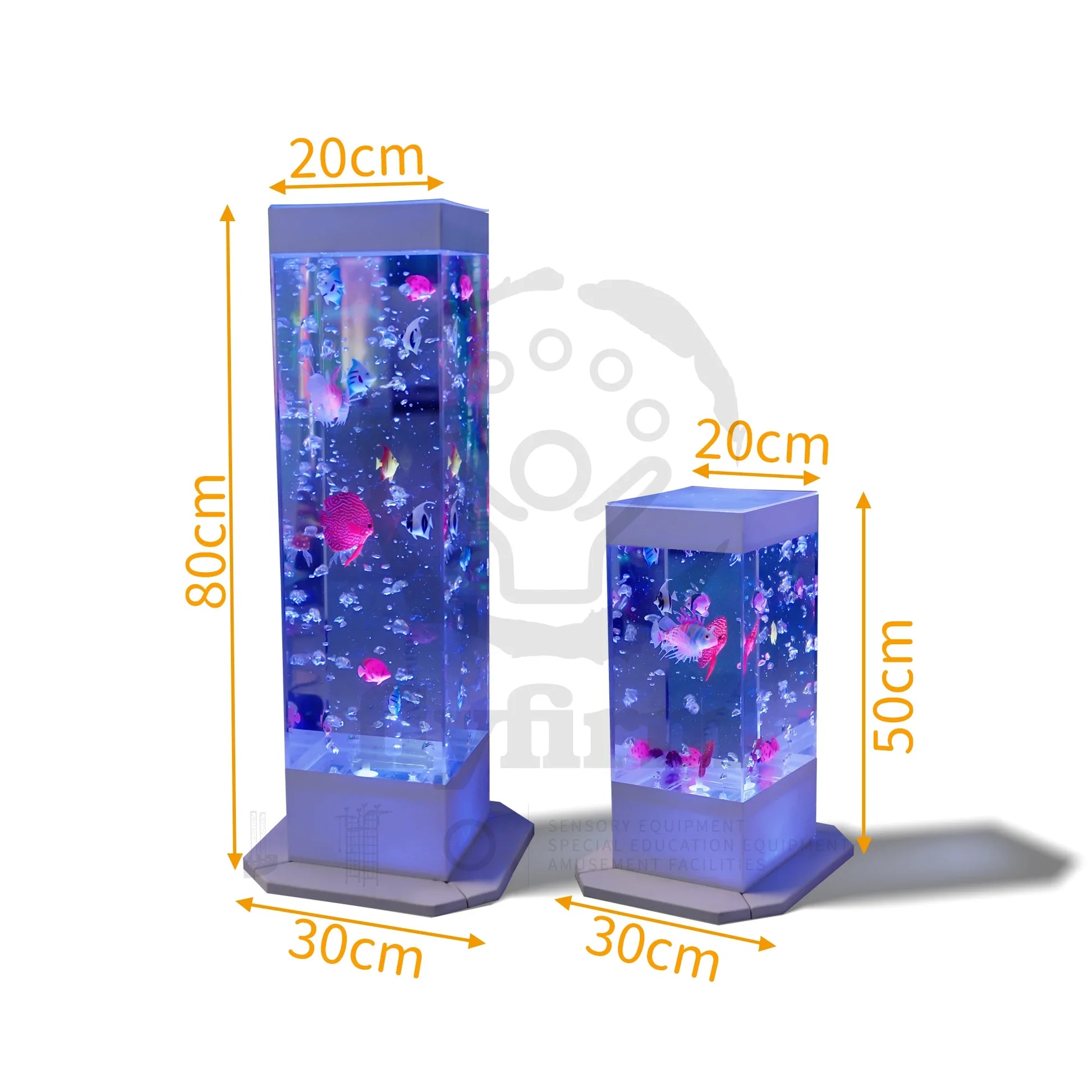 Our Bubble Fish Tank with LED Lights is designed for sensory rooms, relaxation spaces, and therapy environments, specifically to support autism therapy and mental relaxation. Available in two sizes, 20x20x50cm and 20x20x80cm, this sleek and modern aquarium offers a calming, visually stimulating experience that soothes the mind and enhances focus.