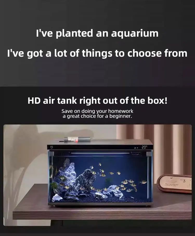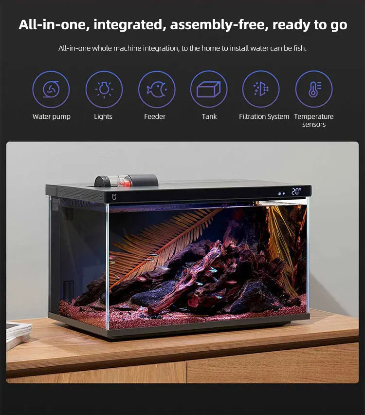 Glass Aquarium Fish Tank Intelligent Desktop Ecological Fish Tank with WIFI Control Feeding Box Light Filter