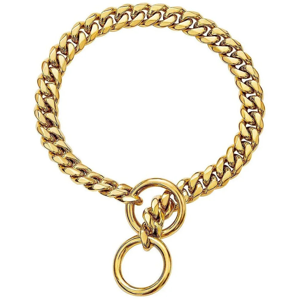Gold Chain Dog Collar 10mm Fashion Dog Cuban Link Pet Gold Necklace Metal Puppy Jewelry Bulldog P Chain Pet Training Slip Collar