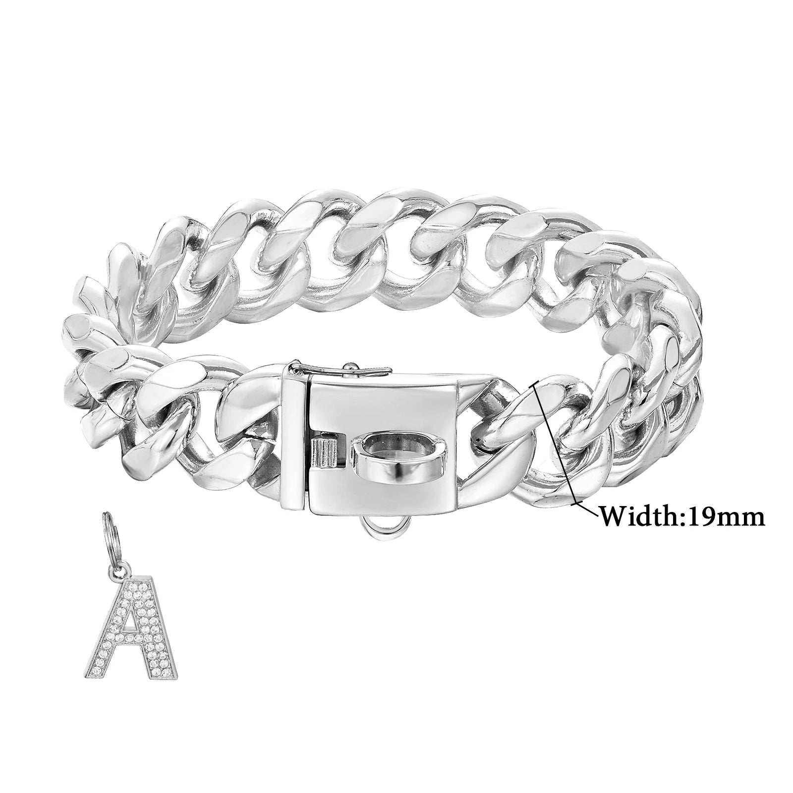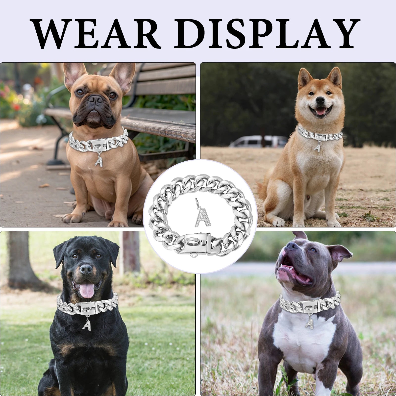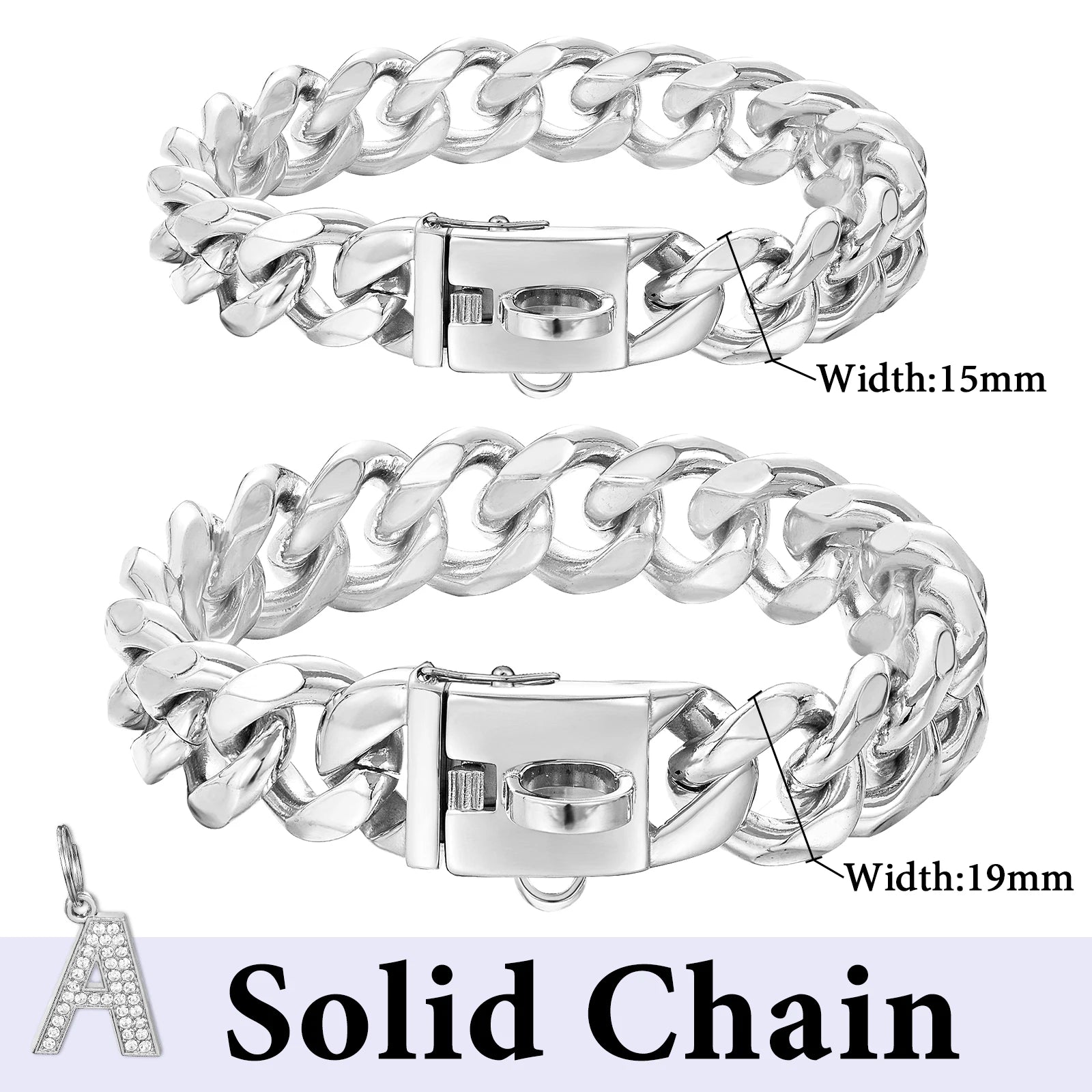 Gold Dog Chain Collar with Pendant A 15/19mm Wide Solid Cuban Link Chain Strong Stainless Steel Chew Proof Collars for Small Medium Large Dogs