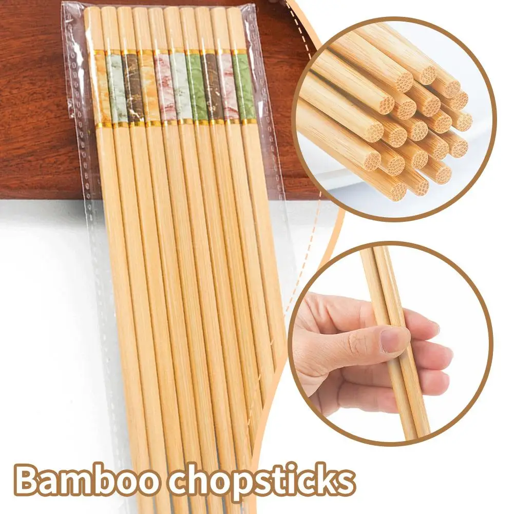 Green And Healthy Natural Bamboo Chopsticks 5 Pairs New Home Use Mildew-proof And High Temperature Resistant Environmentally