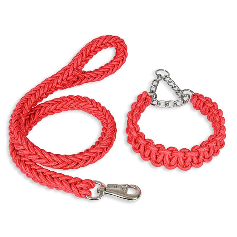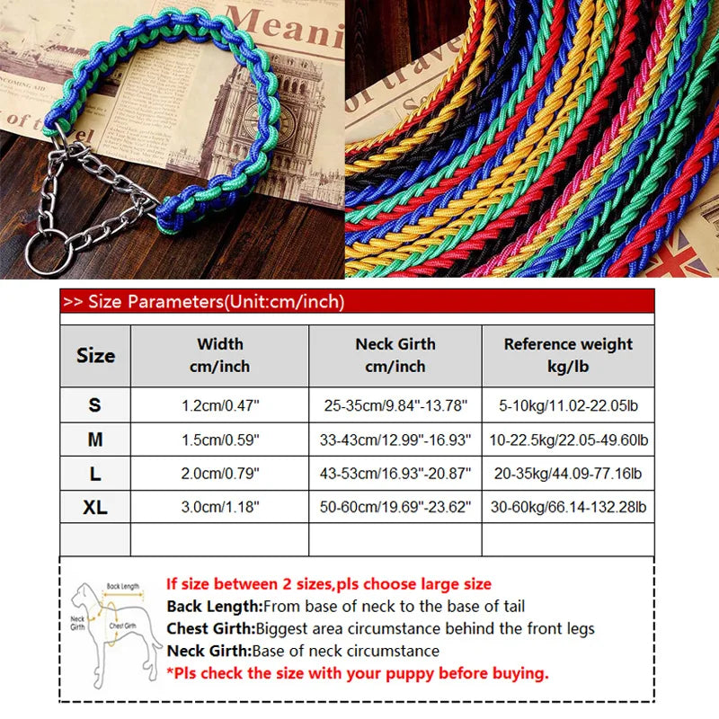 Heavy Duty Pet Dog Collar Leash Set Adjustable Obedience P Chain Collar Nylon Dog Leash Strap Lead Rope for Medium Large Dogs