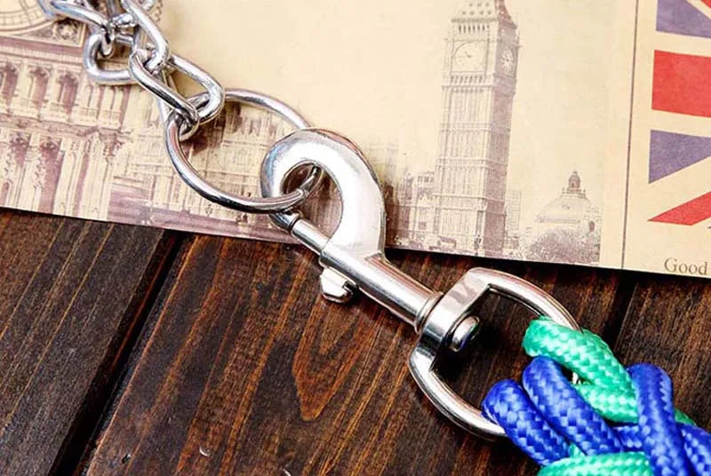 Strong, rust resistant, electroplated chrome ring and chain for durable and stable leash attachment