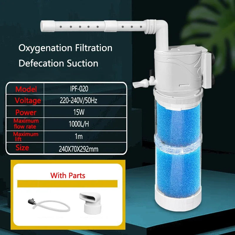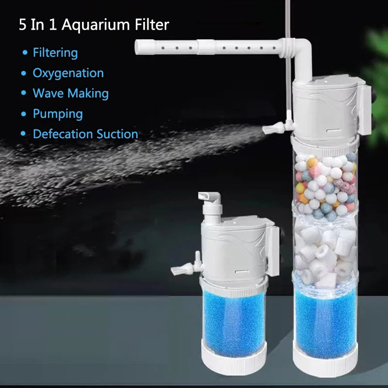 5-in-1 Internal Aquarium Filter Pump Fish Tank Submersible Silent Air Oxygen Aerator Internal Water Pump Aquarium Air Pump Wave Maker