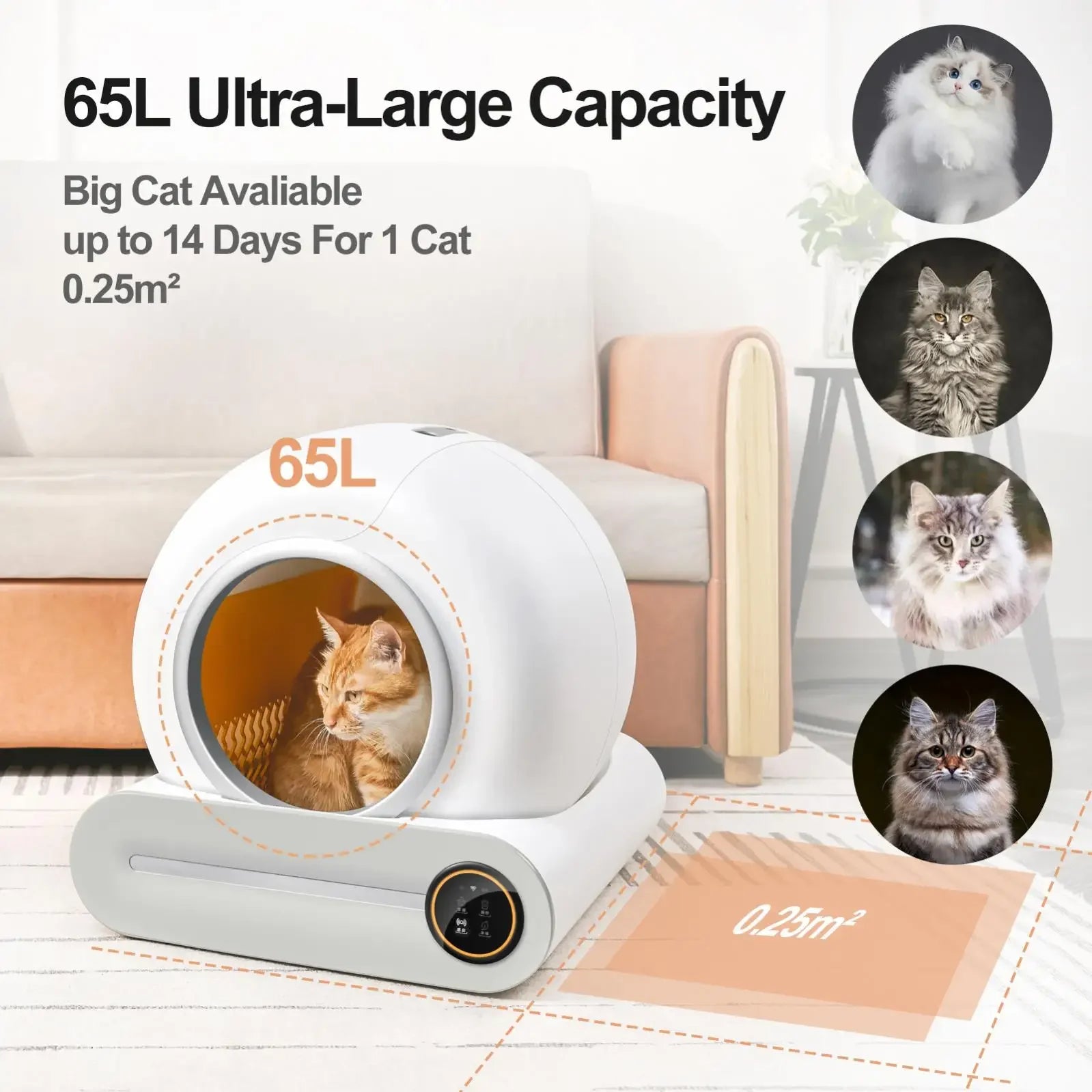 Large Capacity Self Cleaning Cat Litter Box Smart Automatic Cat Litter Box With APP Control For Multiple Cats