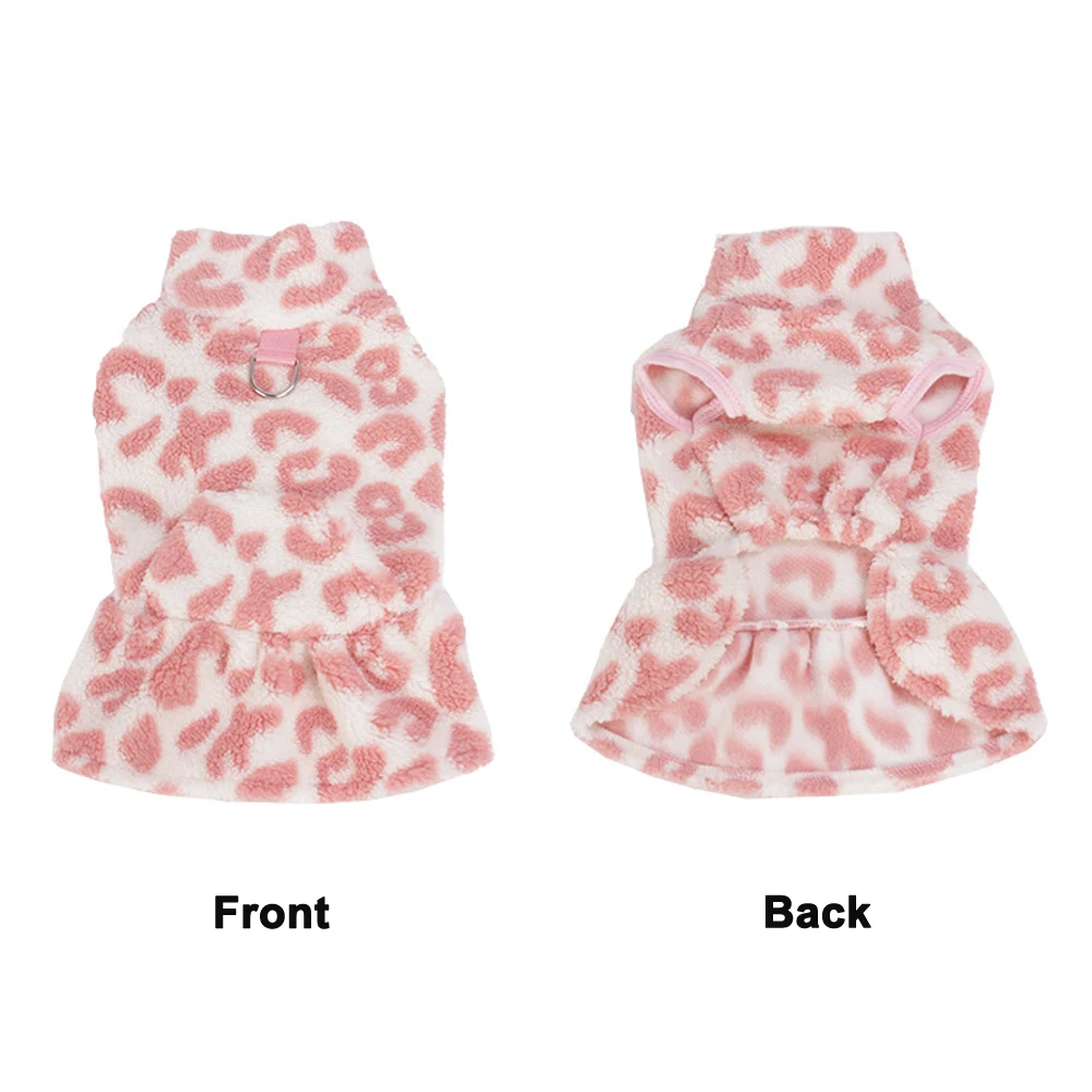 Leopard Dog Sweater Dress Fleece Puppy Dresses for Small Dogs Girl Cat Skirt Apparel Winter Warm Dog Clothes