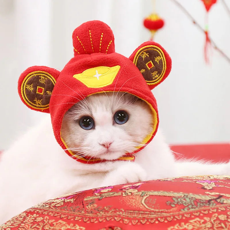 Lion Cattle Pattern Dog Costume Hat for Cat New Year Party Birthday Costume Pet Dogs Products Keep Warm Winter Puppy Accessories