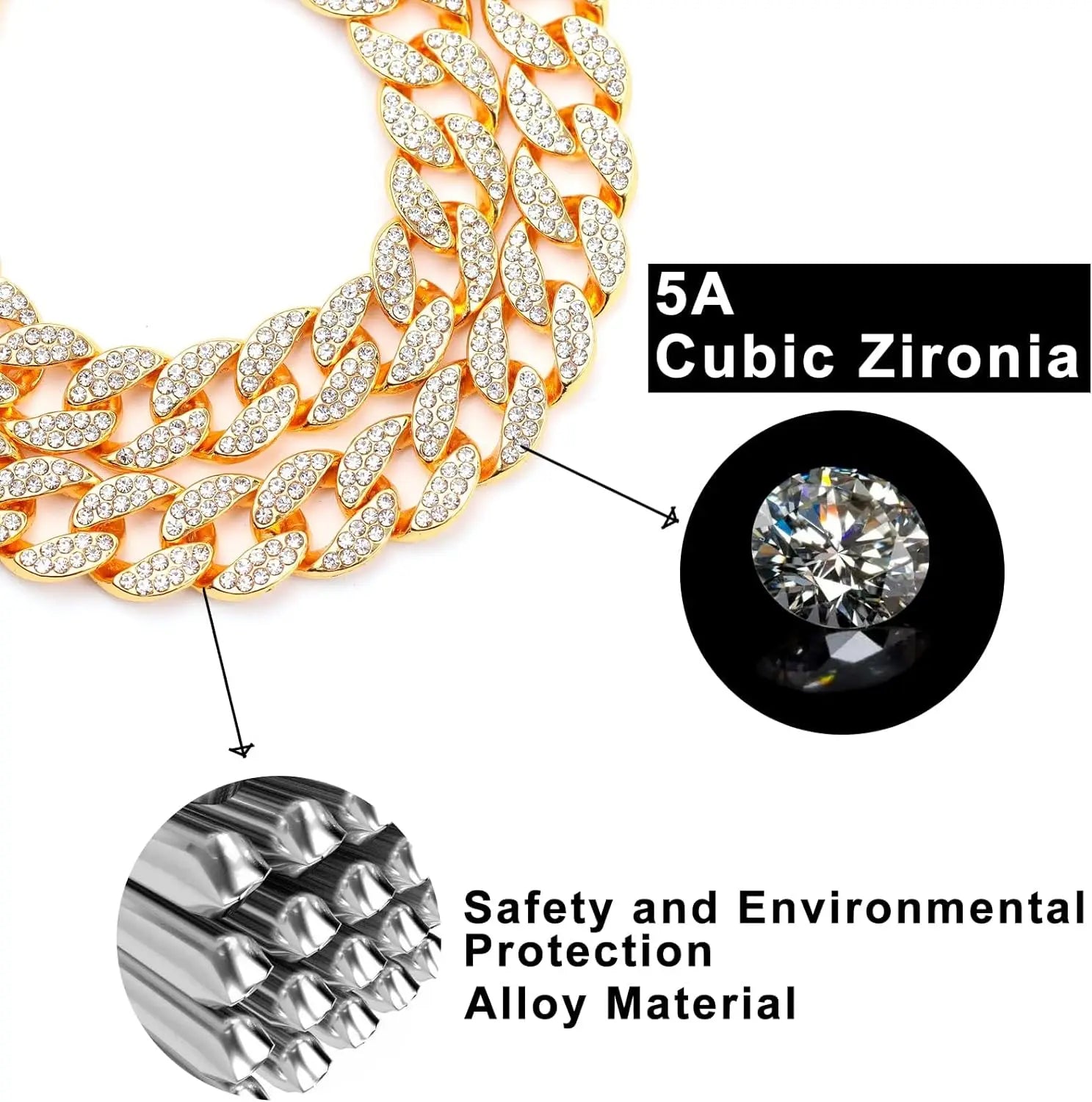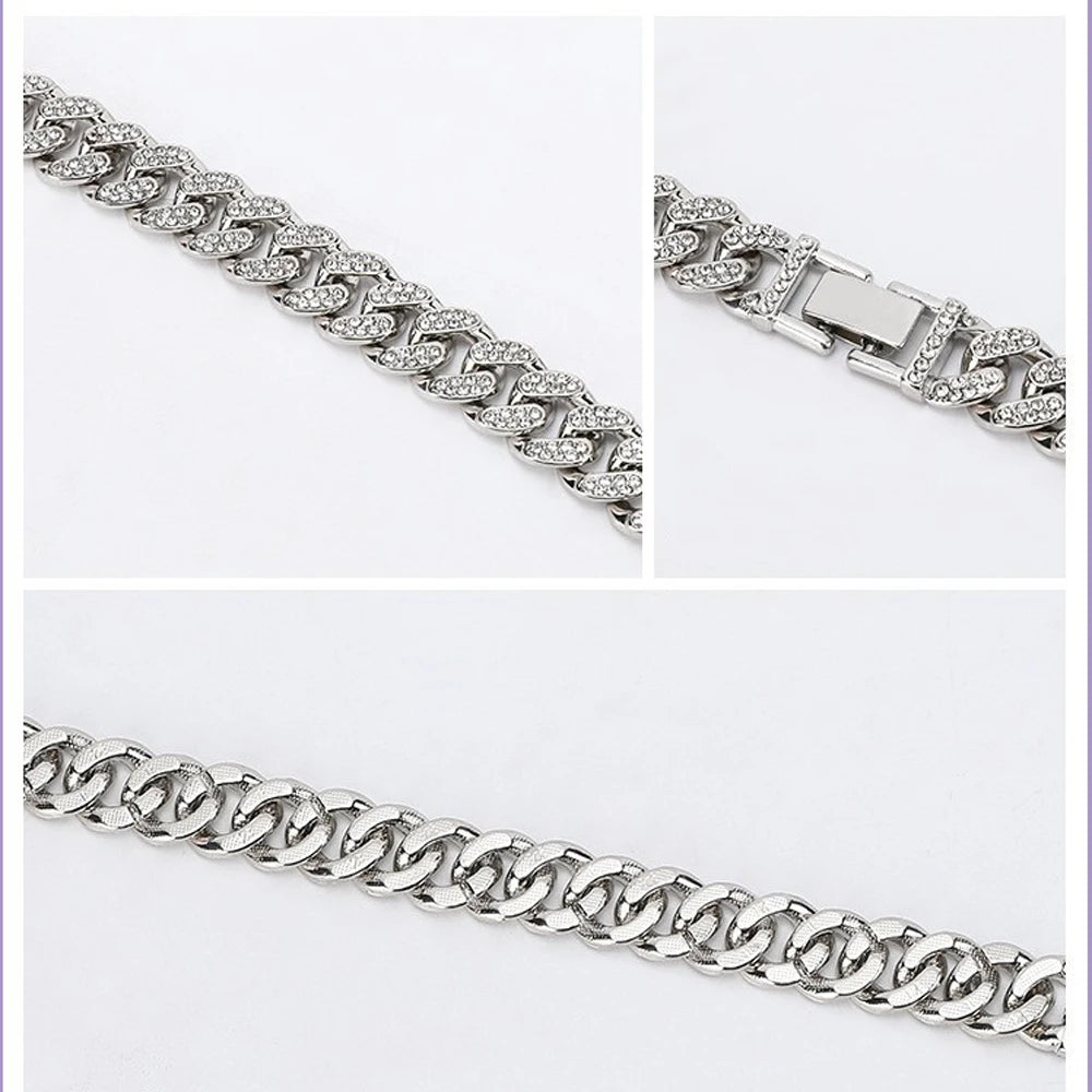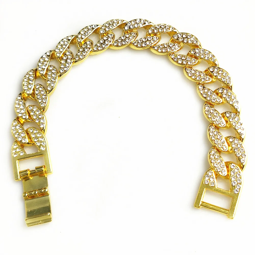 Luxury Rhinestone Dog Cuban Chain Collar with Quick Release Buckle Gold Pet Necklace Jewelry Accessories for Small Medium Large Dogs Cat