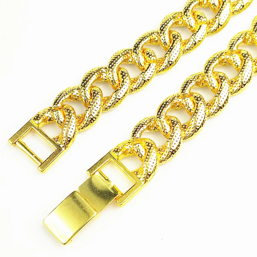 Luxury Design Cuban Chain Dog Collar with Quick Buckle for Small Medium Large Dogs Cats 15MM Gold Chain Pet Necklace Jewelry