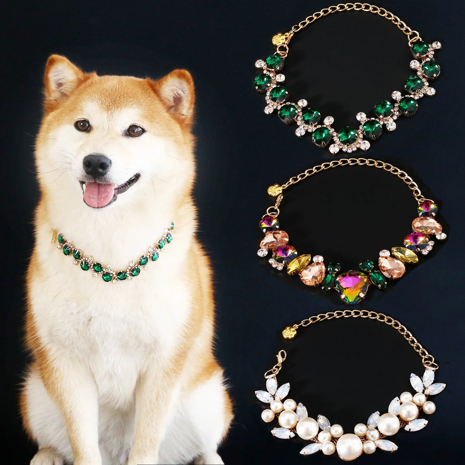Luxury Dog Accessories for Small Medium Dogs Puppy, Blingbling Diamond Pearl Dog Cat Neckalce Adjustable Crystal Jewelry Collar