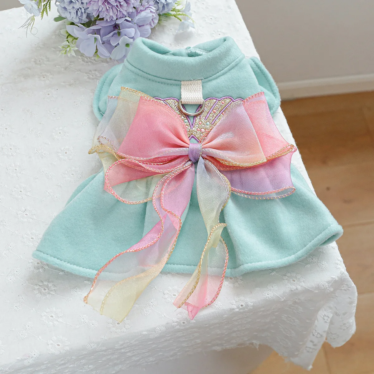 Luxury Woolen Princess Dress for Small Dogs Girl, Autumn Winter Warm Dog Clothes Yorkie Chihuahua Puppy Bowknot Skirts