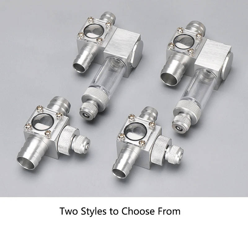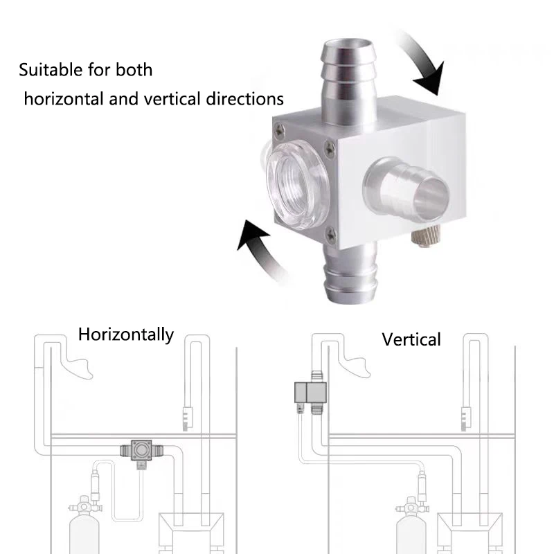 It is recommended to tilt the air pipe connection downward during installation. If the air pipe connection faces upwards and there is air inside the product, please loosen the metal cover of the acrylic glass and ventilate it slightly, and then tighten it immediately after ventilation.