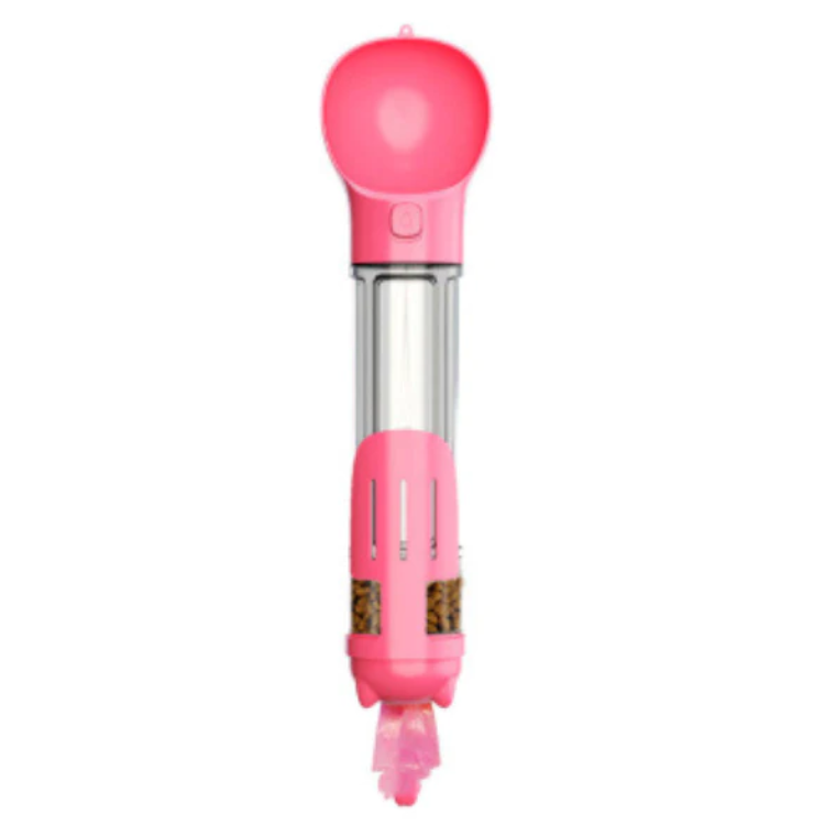 All-in-One Convenience: This versatile bottle combines a water dispenser, food feeder, baggy dispenser, and pooper scooper in one compact package, making it a must-have for pet owners on the move.