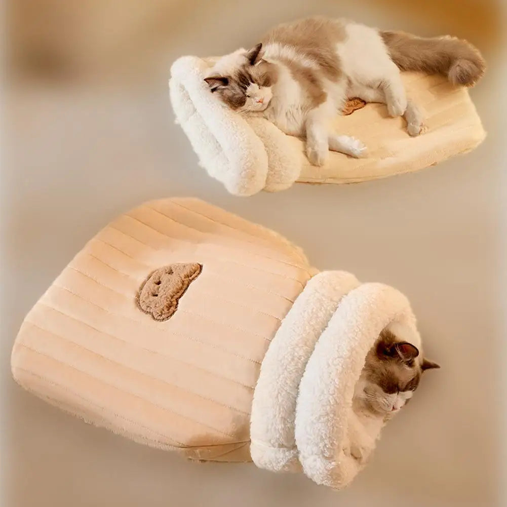 New Creative Pocket Cat Nest Semi-enclosed Pet Sleeping Bag Lambswool PP Cotton Warm And Comfortable Cat Sleeping 44/54cm Bag