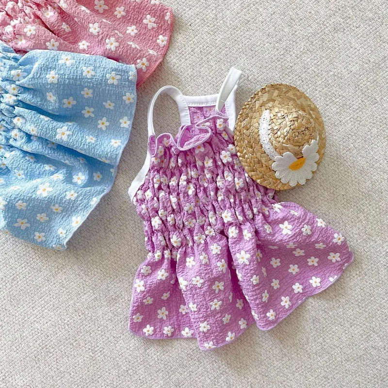 New Designer Pet Dog Clothes Mini Floral Printing Elastic Dog Dress Vest Overalls Princess Pet Cat Skirt Puppy Summer Clothing