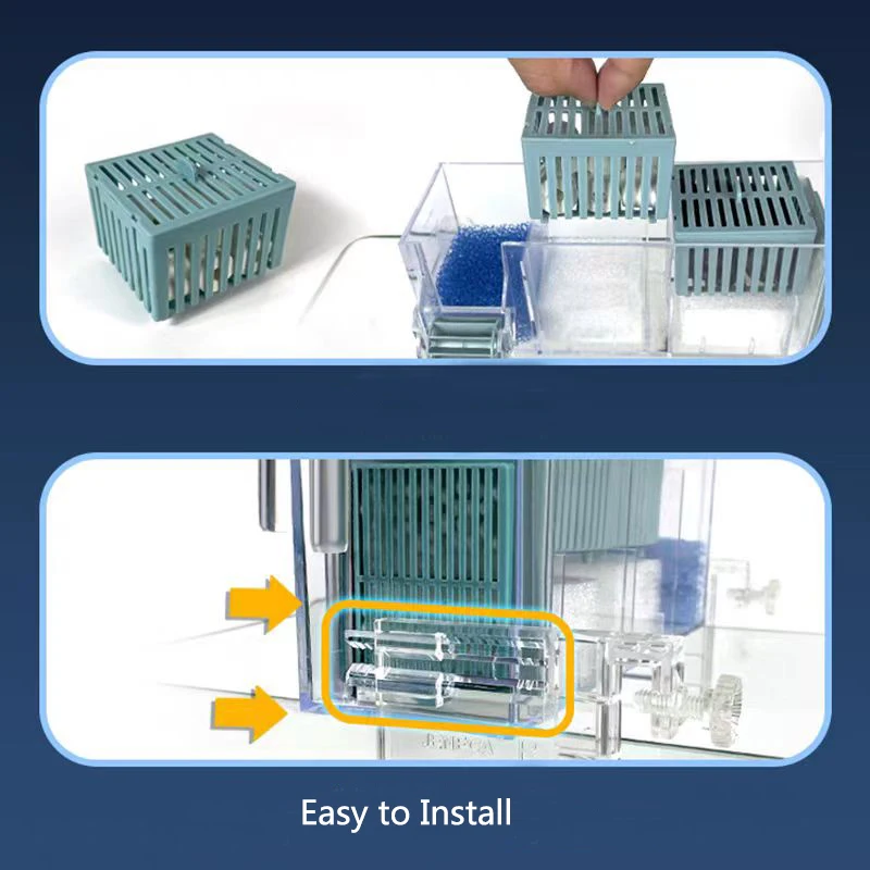 This filter box includes submersible pump, filter box, filter media ball, filter cotton sponge, filter plate, pipe, etc.