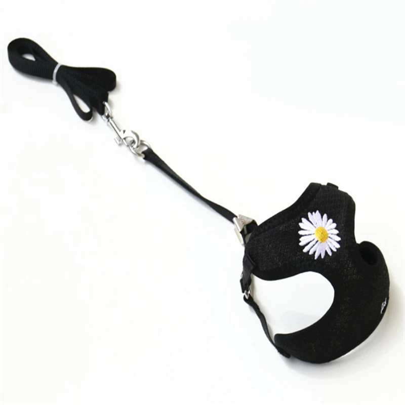 Dog Harness and Leash Set Daisy Embroidery Mesh Breathable Adjustable Pet Harness for Small Medium Dogs Chihuahua Yorkie Hanress Vest Pet Accessories Free Shipping