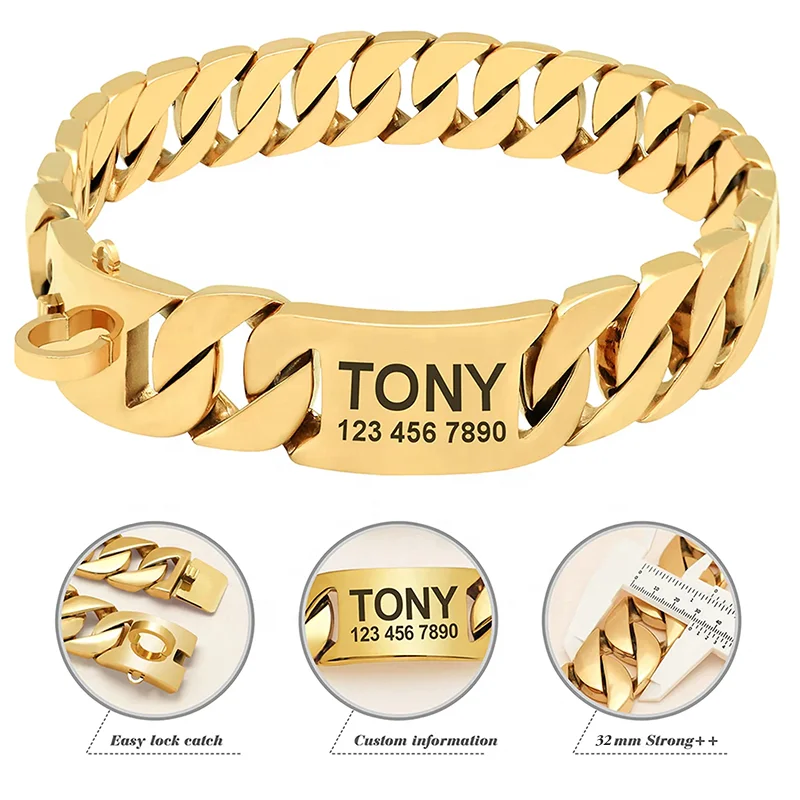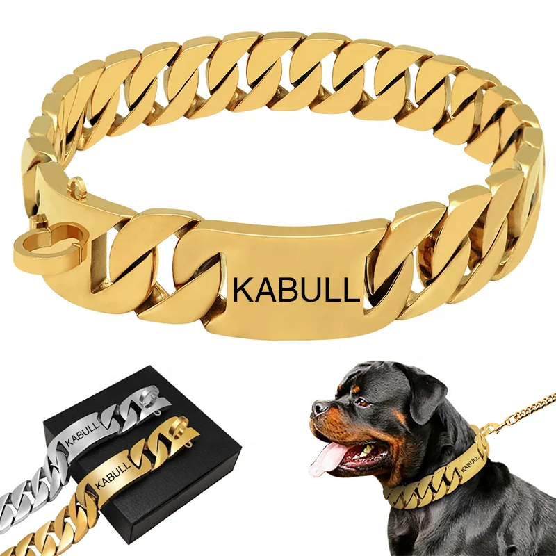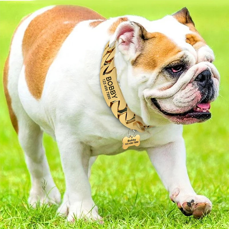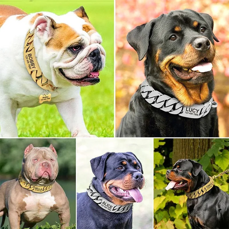 Personalized Dog Name Metal Gold Dog Chain Collars Stainless Steel Pet Training Choke Collar For Large Dogs Pitbull Collar