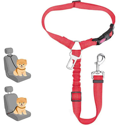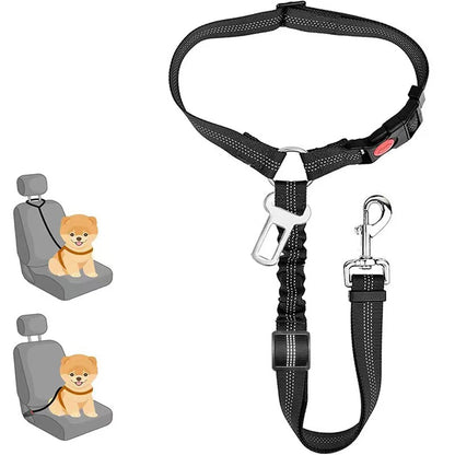 Pet car seat belt rope, circular ring, dog car retractable elastic reflective belt, dog towing rope