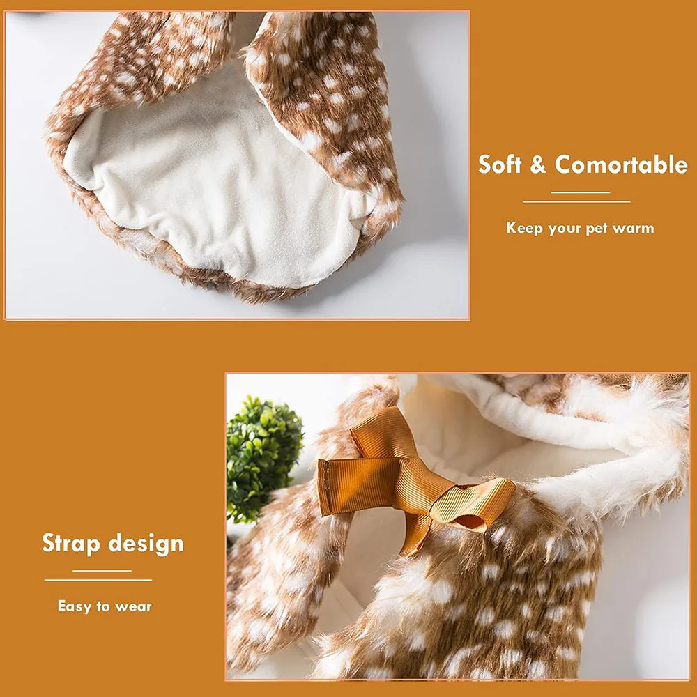 Pet Christmas Costume Puppy Xmas Cloak Cats Dogs Santa Cape with Elk Hat Pet Party Cosplay Dress for Small to Medium Sized Dogs