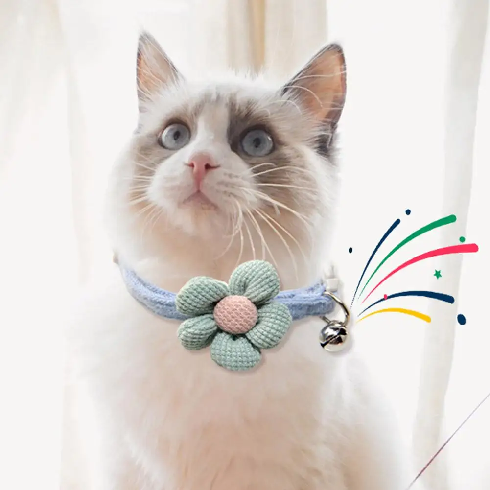 Pet Collar Cute Knitting Flower Bell Collar With Adjustable Collar Style Cartoon Cat Safety Small Dog Pet Supplies Buckle V6S4