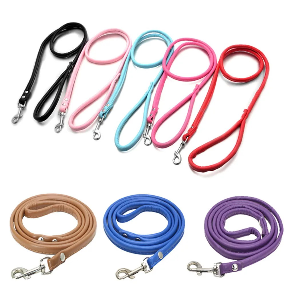 Pet Products Round Colorful PU Rolled Dog Walking Leashes for Small Medium Breeds Dogs Puppy Chain Lead Training Walking Leash