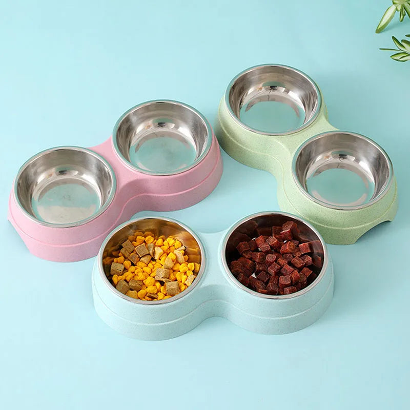 Pet Stainless Steel Bowls Double Puppy Dog Food and Water Bowls Set Cat Bowls Pet Feeder Dishes Dual Bowls for Small Dogs Cats