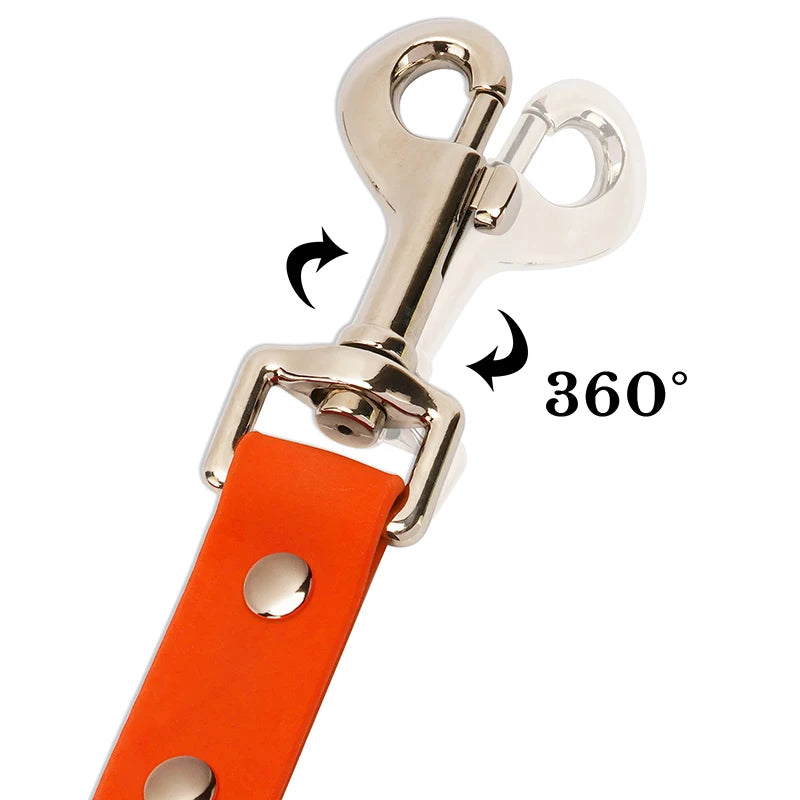 Heavy duty PVC dog leash: Our PVC dog leash boasts a flexible substrate core bonded with a waterproof coating, perfect for environs where strength and cleanliness are crucial. It will not get stiff during extreme cold and will not melt during extreme heat. Super Heavy duty PVC webbing has 750 lbs ,which will allow you a long long term use.