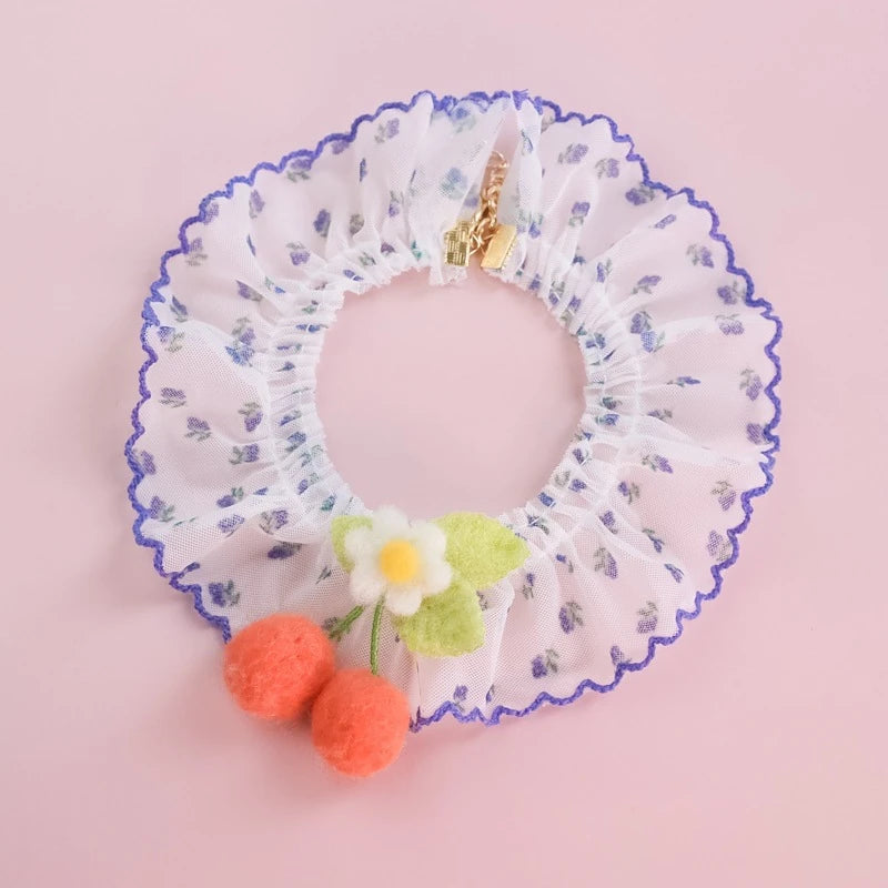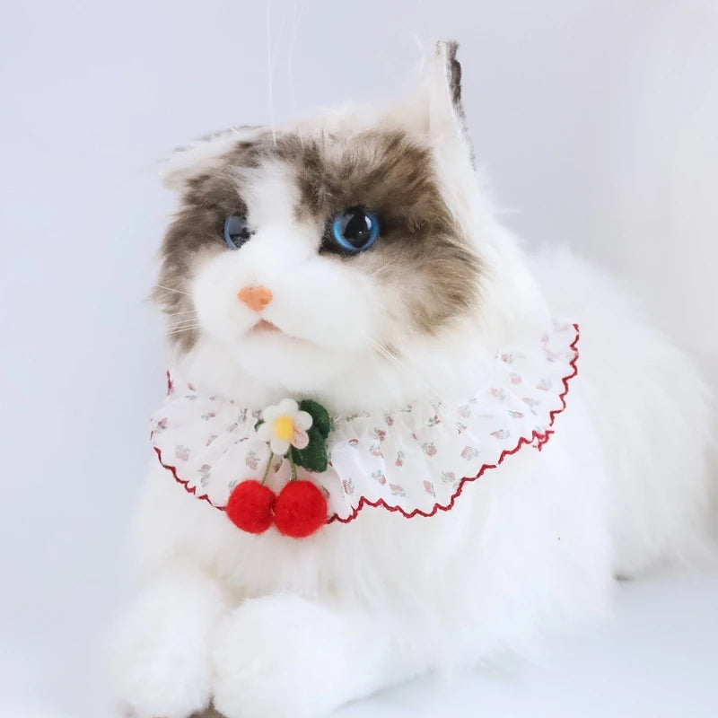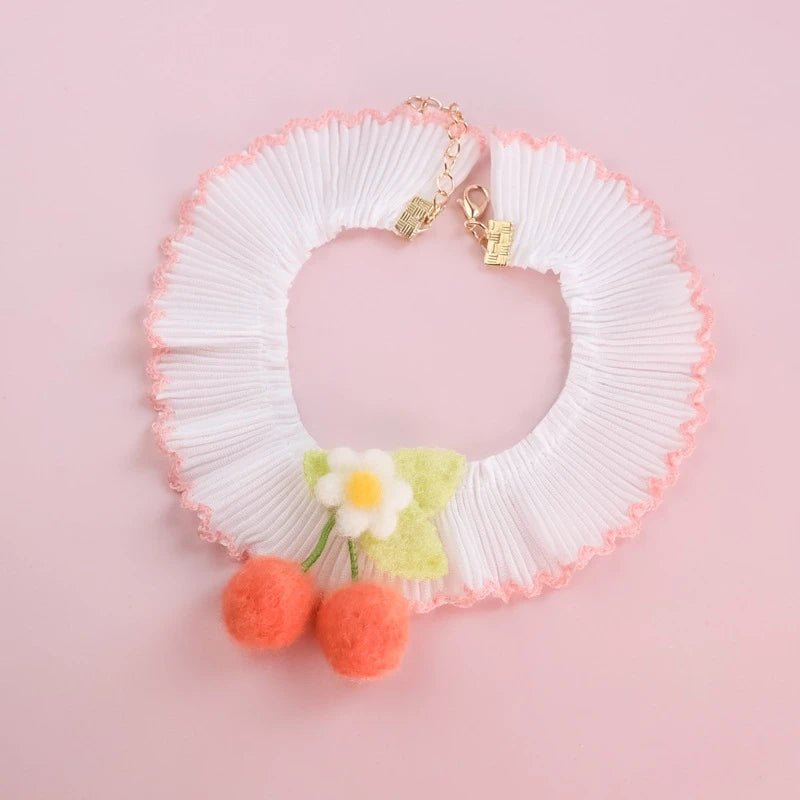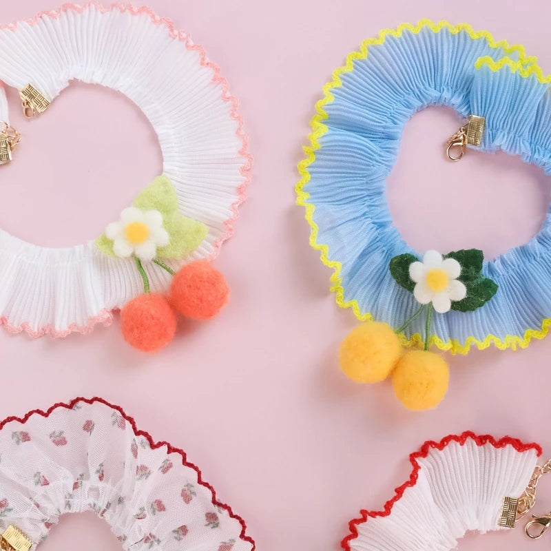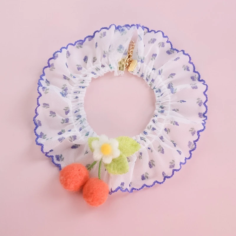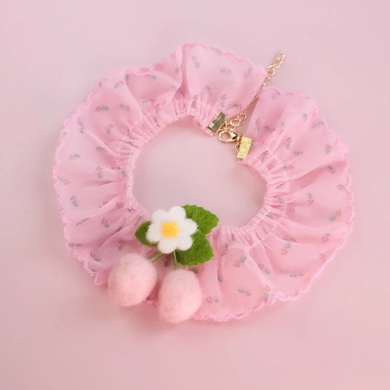 Red Pink Cherry Dog Collar for Chihuahua York Lace Floral Birthday Kitten Necklace Romantic Princess Pet Cat Neck Accessories
